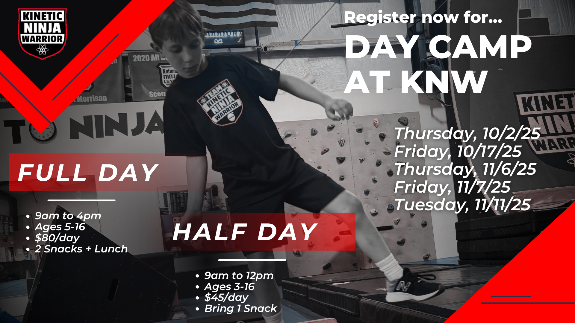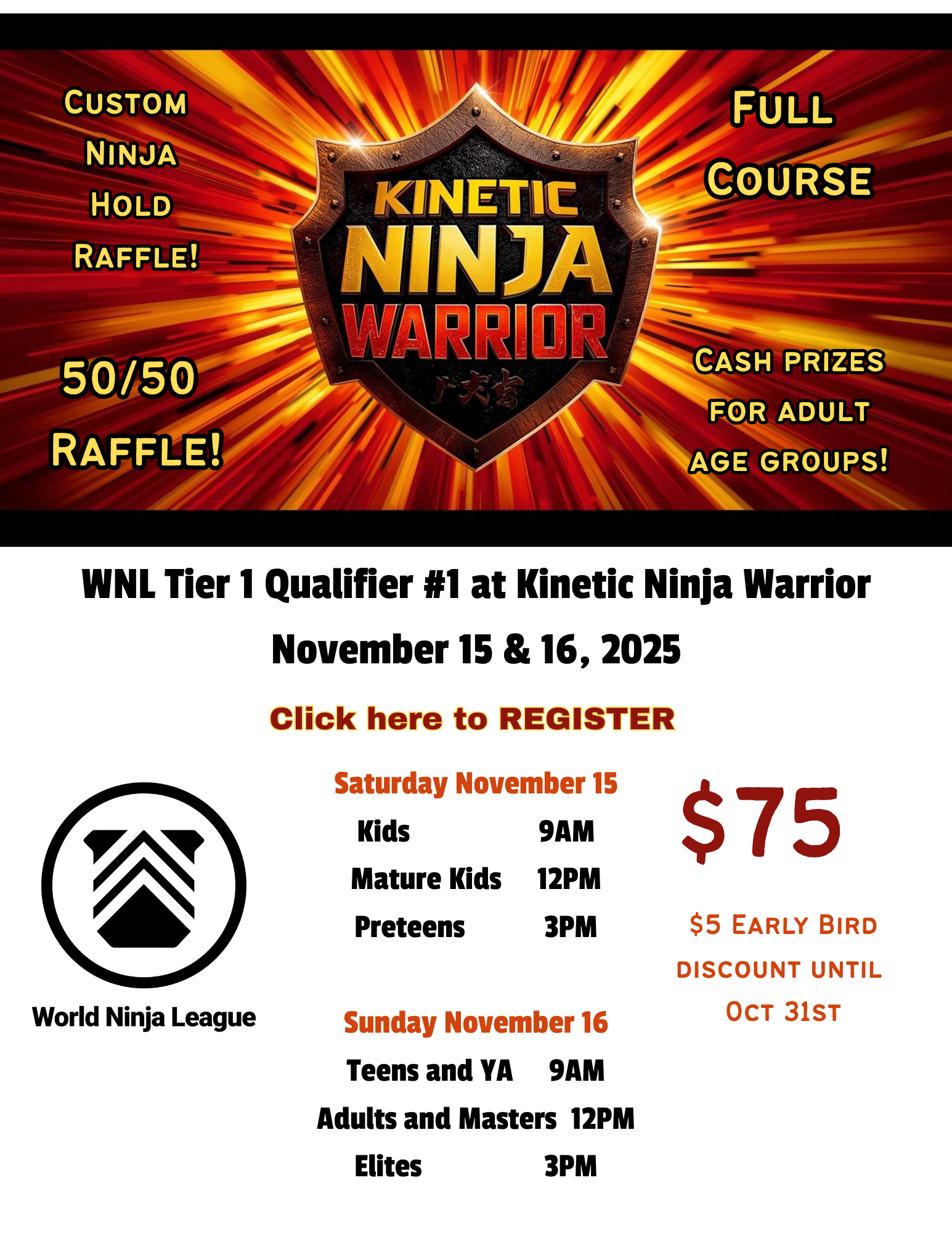 Make a reservation for the event that works best for your ninjas at Kinetic Ninja Warrior!